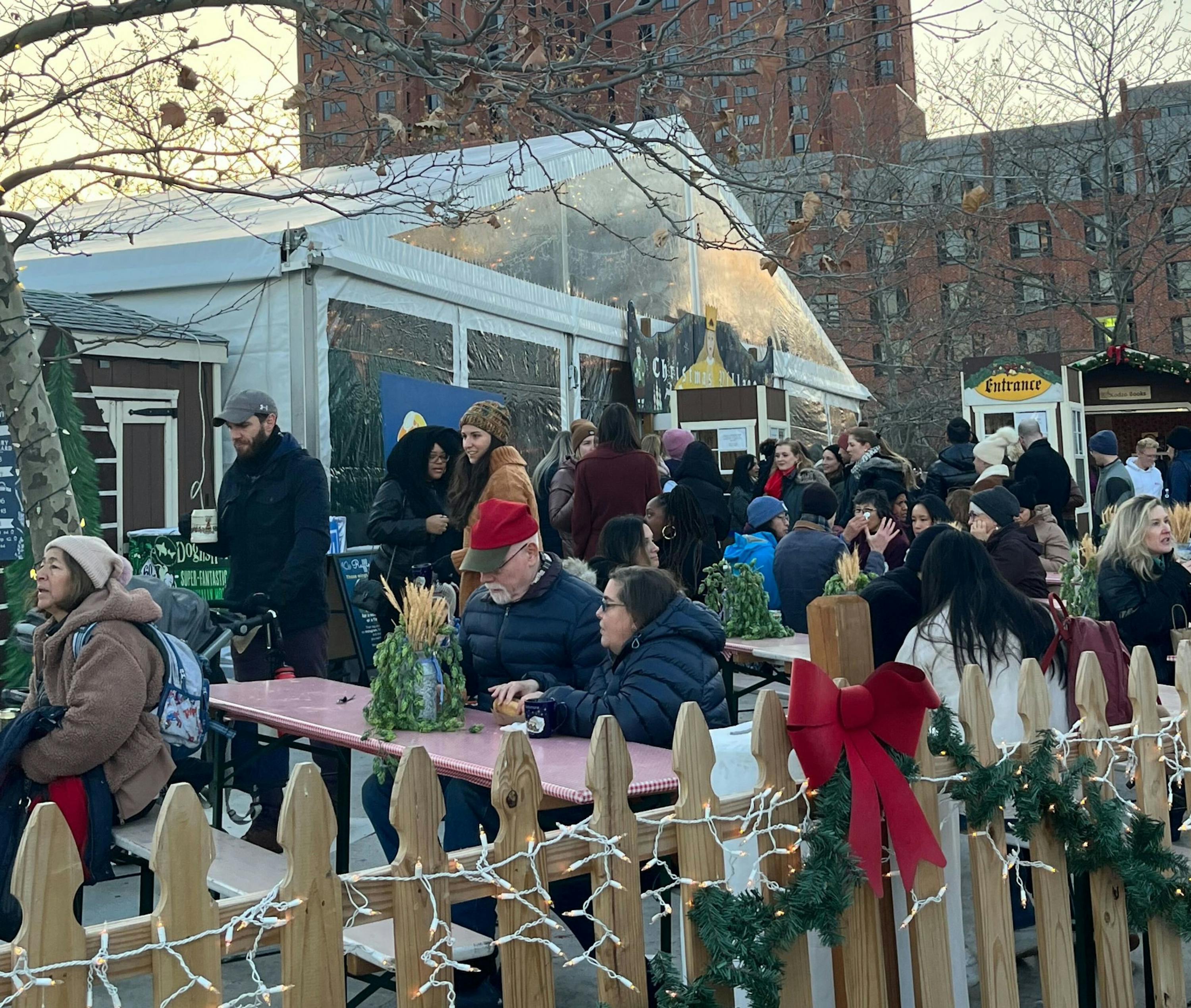Starting at one end, my roommate Ashley and I made our way around the entire village. The shops are displayed in little wooden house-shaped stalls that encircle the main food vendors. We poked our heads into all the stands, taking business cards and smelling the candles from SH Candles. Ashley debated on buying a new plushie from the Squishable stall, and I FaceTimed my mom to show her the Vogue cover 1,000-piece puzzle from the New York Puzzle Company.