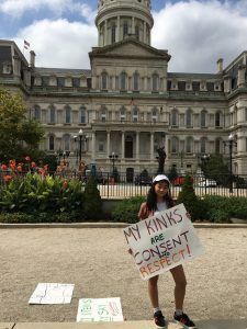 Sage, a high school student who has taken classes and worked at Hopkins, attended with her two friends Asante and Sefa. She came to the march to support other friends of hers who had been sexually assaulted.