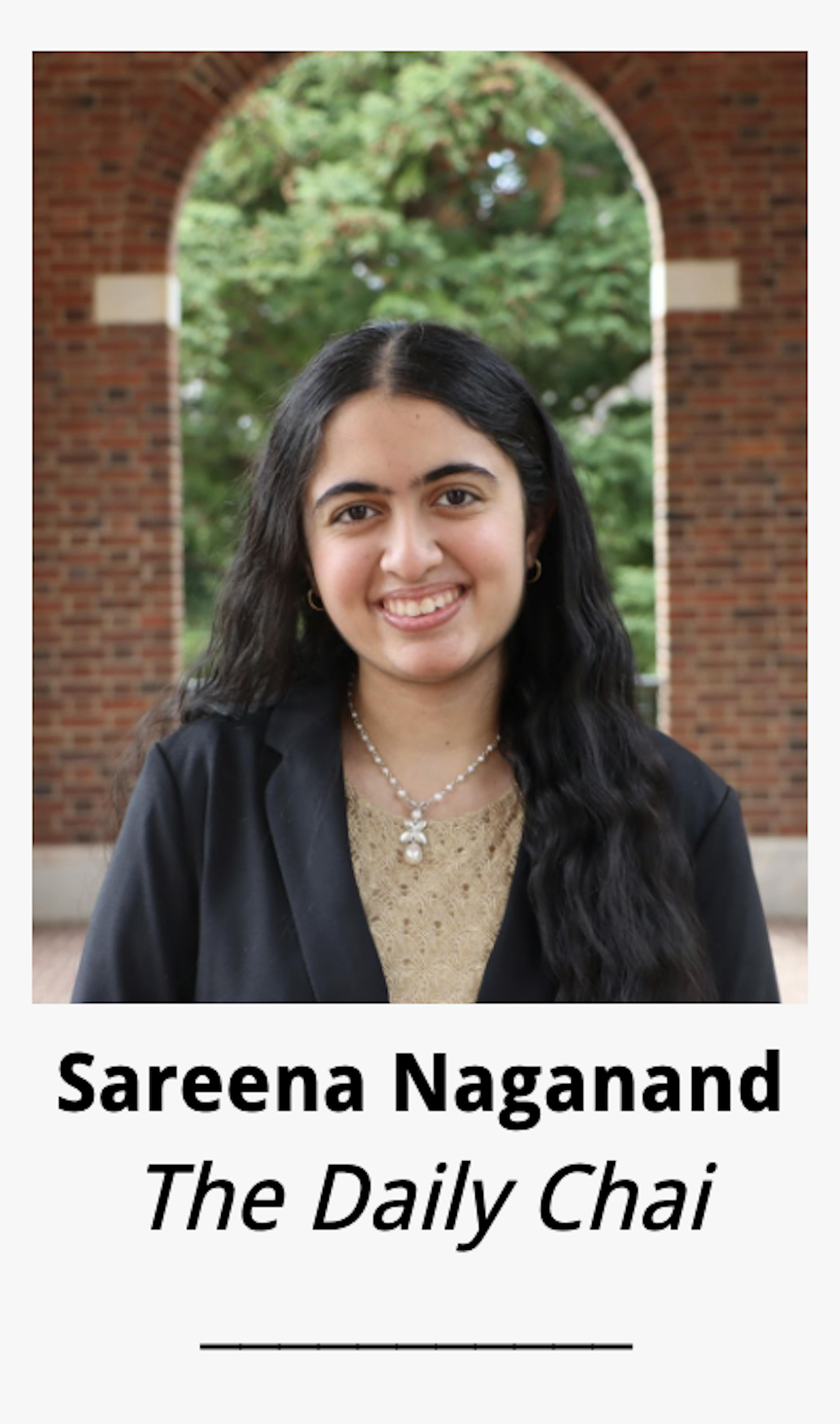 Sareena Naganand is a sophomore from Piscataway, New Jersey majoring in Biomedical Engineering. Her column, “The Daily Chai,“ is about finding happiness in simple, insignificant moments: the kind that makes us smile, wrapping around us like the warmth that comes from drinking a cup of tea.