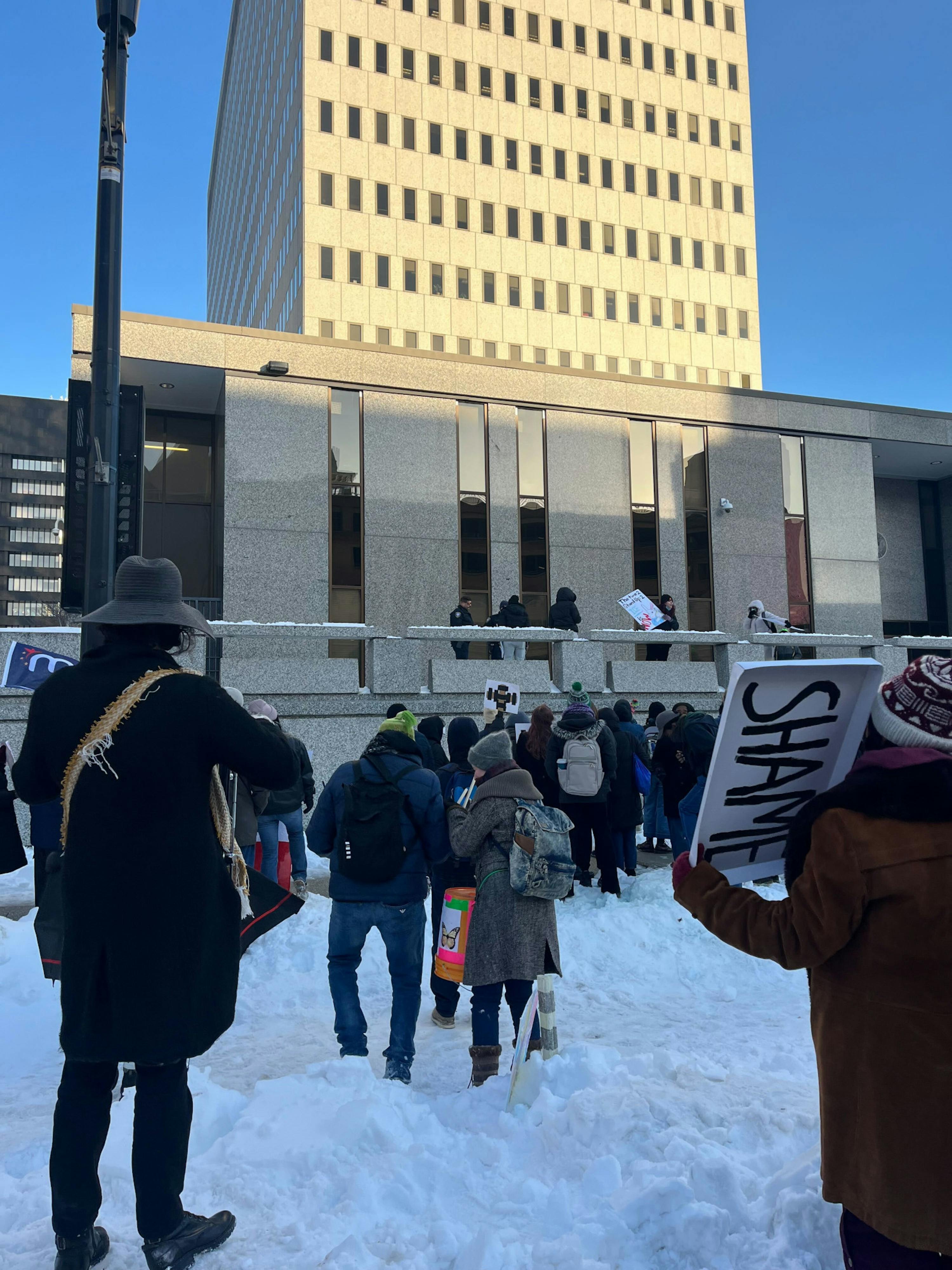 The Baltimore protest against ICE lasted for several hours, with participants marching in frigid weather. Outside the Baltimore ICE field office at 31 Hopkins Plaza, protesters were seen shouting at police officers various chants, such as “Quit your job!”