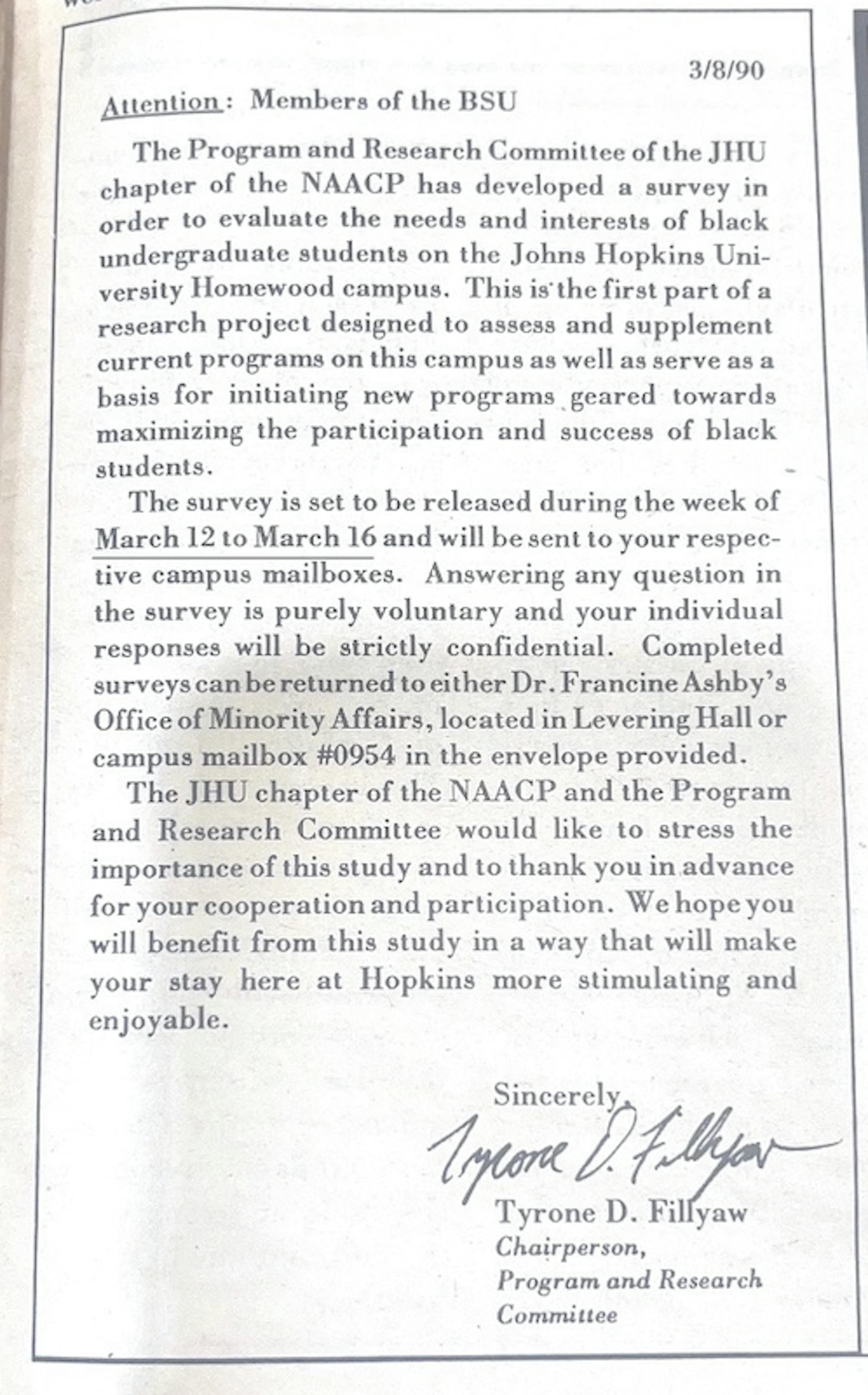 The March 1990 edition publicized a survey to assess programs intending to support Black students, hoping to initiate new programs to increase their success and participation.