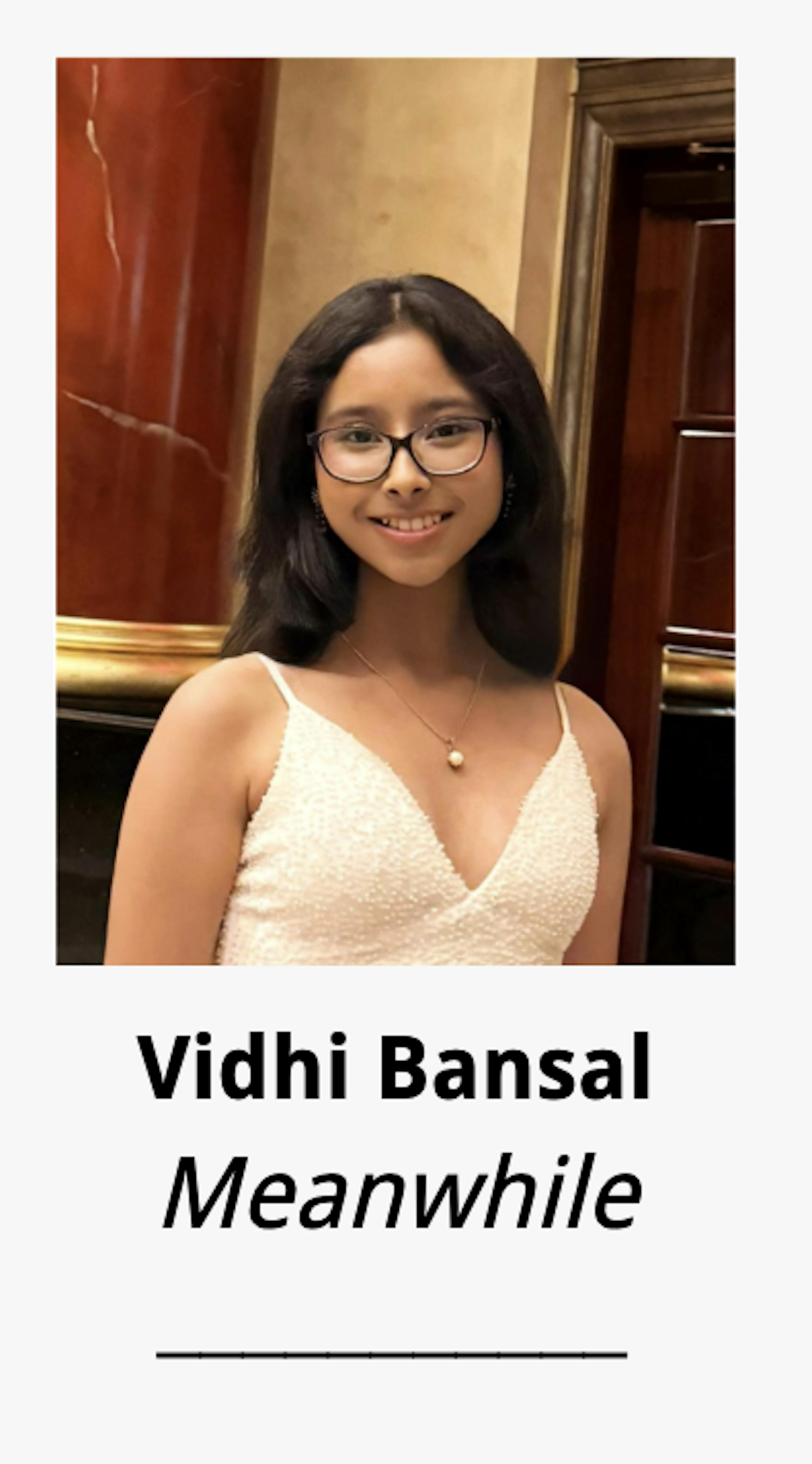 Vidhi Bansal is a freshman from Upper Saddle River, N.J., studying Neuroscience. In “Meanwhile,” Bansal finds meaning in the unfinished and the unglamorous, showing how the in-betweens are often where life actually happens.