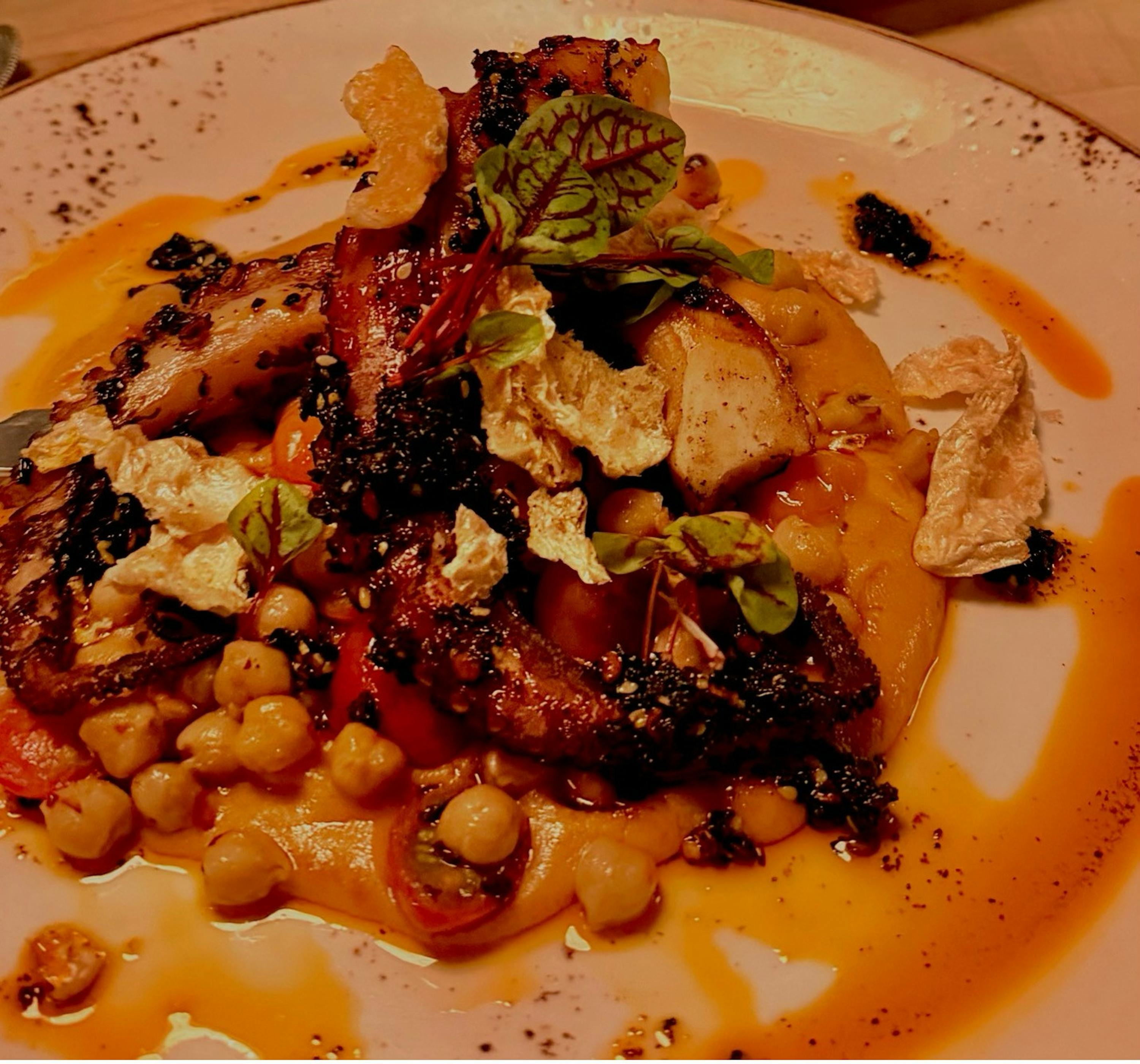 The grilled octopus was equally eye-catching, plated with glossy, marinated tentacles alongside vegetables and a smooth potato purée. The flavors were bold and well-seasoned, offering a dish that felt thoughtfully prepared and visually impressive.