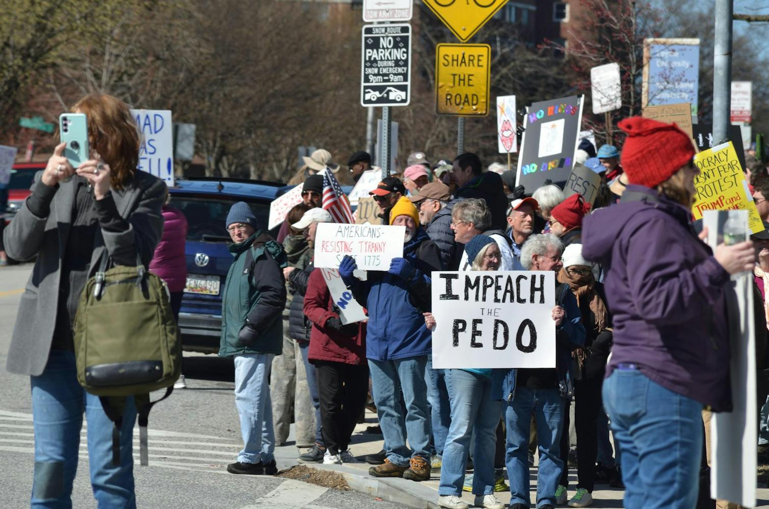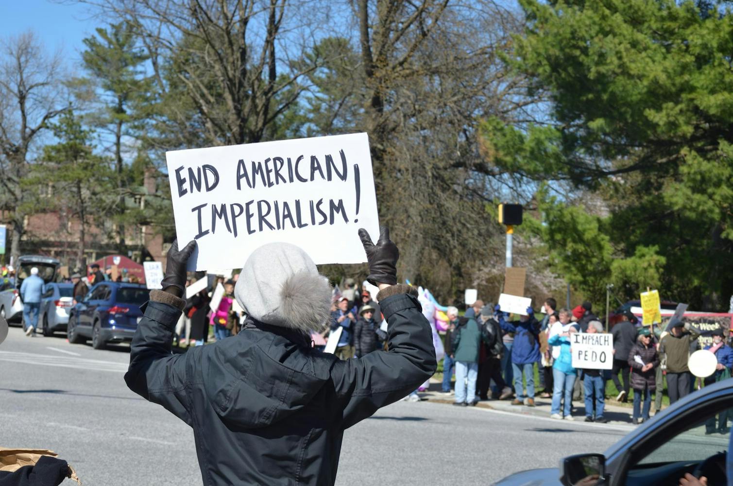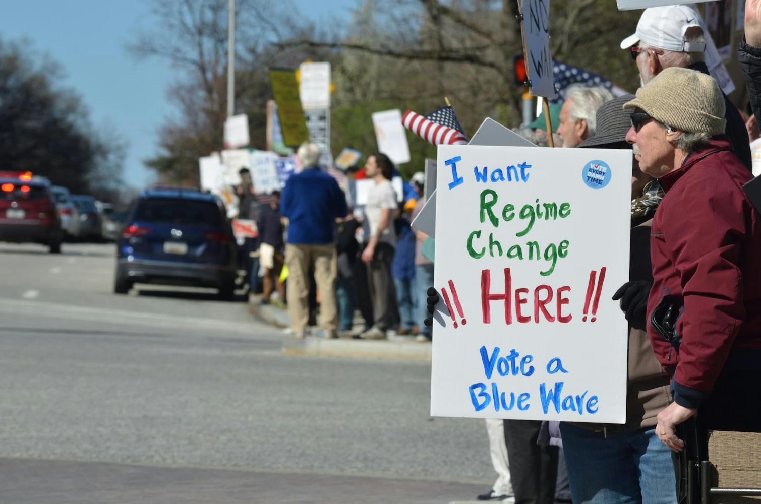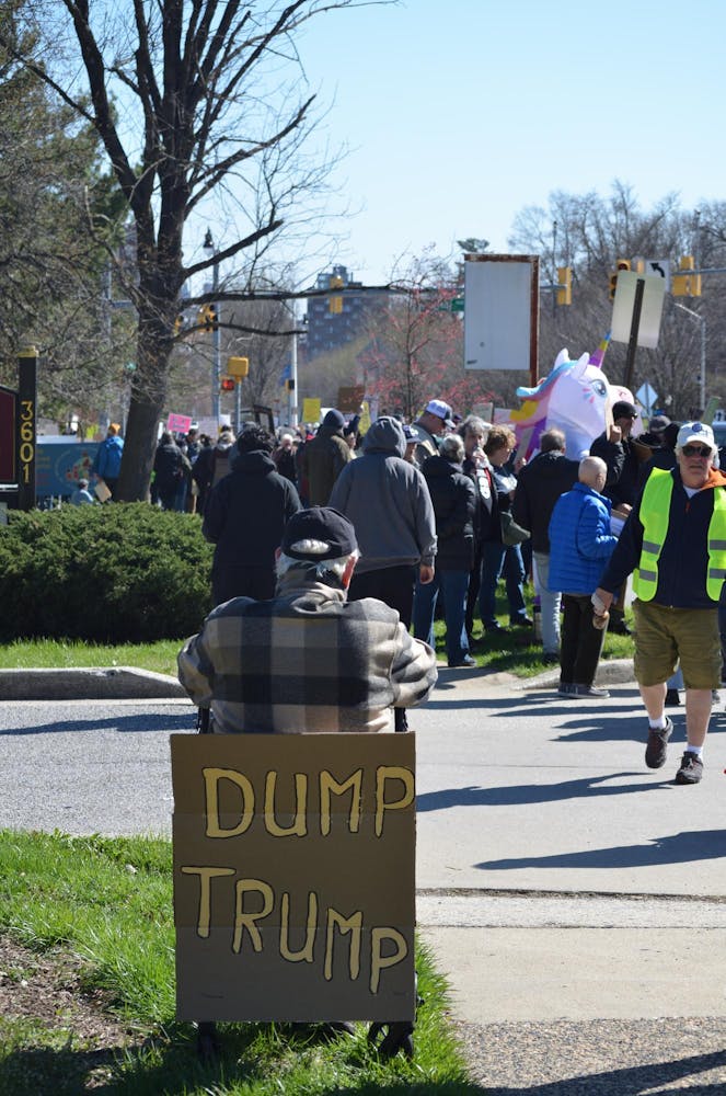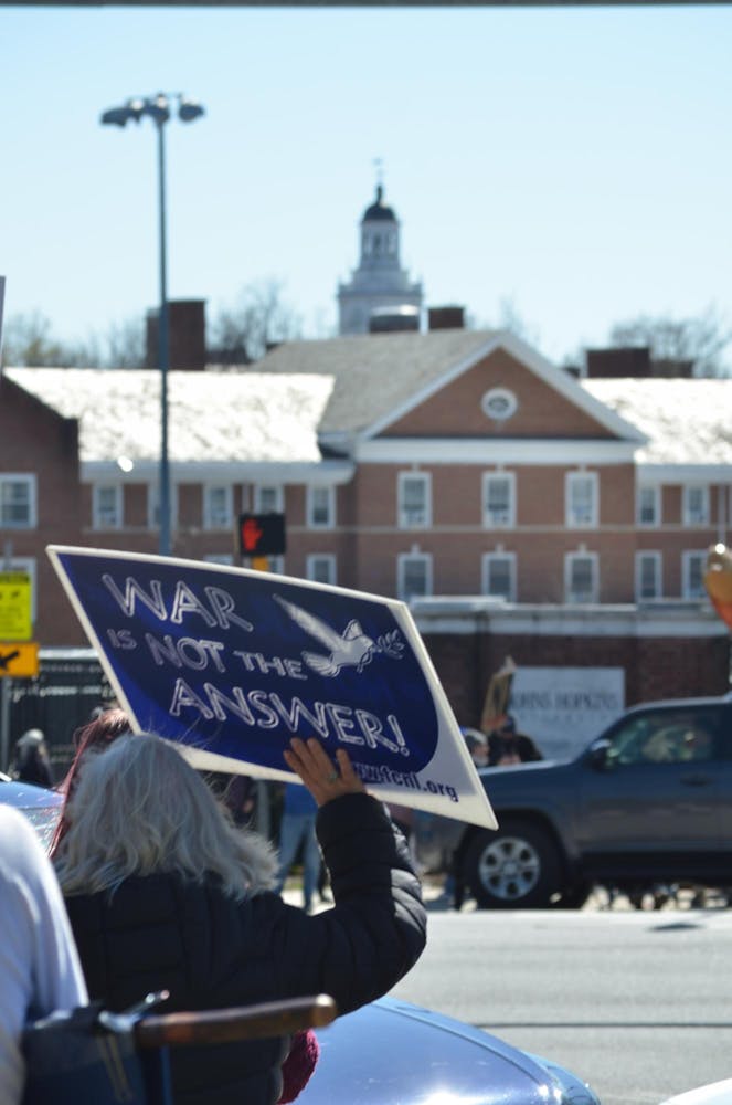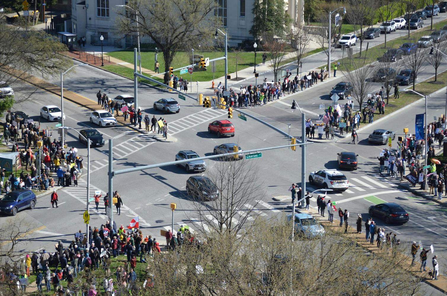 Hopkins students joined community members at N. Charles Street and University Parkway as part of a nationwide day of protest against the Trump Administration on Sat. March 28.
