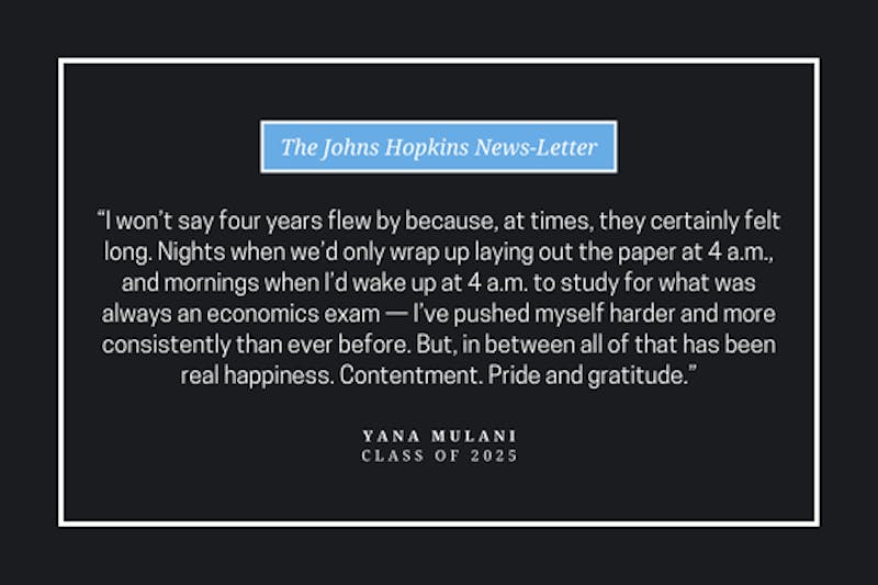I won’t say four years flew by because, at times, they certainly felt long. Nights when we’d only wrap up laying out the paper at 4 a.m., and mornings when I’d wake up at 4 a.m. to study for what was always an economics exam — I’ve pushed myself harder and more consistently than ever before. But, in between all of that has been real happiness. Contentment. Pride and gratitude.