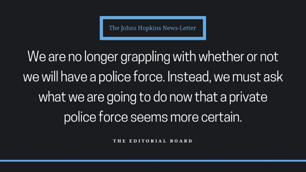 By THE EDITORIAL BOARD | April 11, 2019Since the University first announced its intent to create a private police force in March 2018, the Editorial Board has opposed the initiative. Now the bill – called the Community Safety and Strengthening Act – has passed in the Maryland General Assembly, and we maintain our opposition. We are disappointed that this bill is moving forward and we have the same concerns about a Hopkins police force that we have already expressed over the past year: a continuation of corrupt policing in Baltimore, potential racial profiling of students, the threat of armed guards on campus and further division between the Hopkins and Baltimore communities.